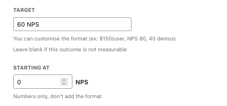 Tability is a flexible platform that allows you to add your exact target to simplify the check-in experience. You'll be able to set the target to "60 NPS" if your goal is to increase NPS from 0 to 60.