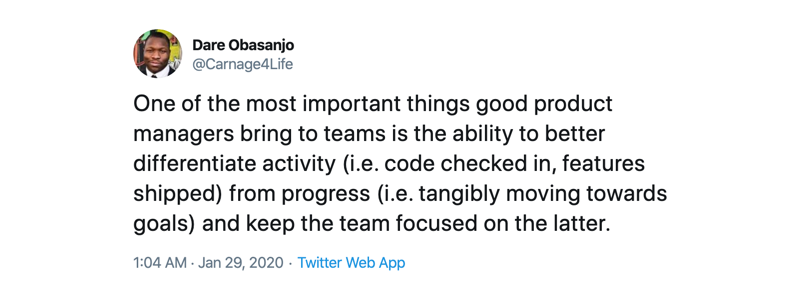 When I saw the tweet pictured above, it felt like someone just explained Tability to me. Being busy does not equal producing results, and teams need good feedback loops to make sure that they're working on the right things.
