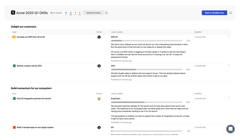Nothing beats a well-placed dashboard to keep things on top of the mind. Tability has built-in TV dashboard views so that you can put your goals and OKRs where everywhere can see them.