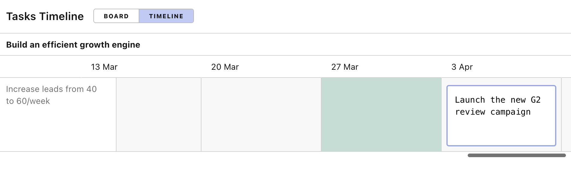 We recently launched a timeline view for initiatives/tasks that allowed you to see the work planned for each goal in a plan. You can now create new initiatives directly from the timeline view!