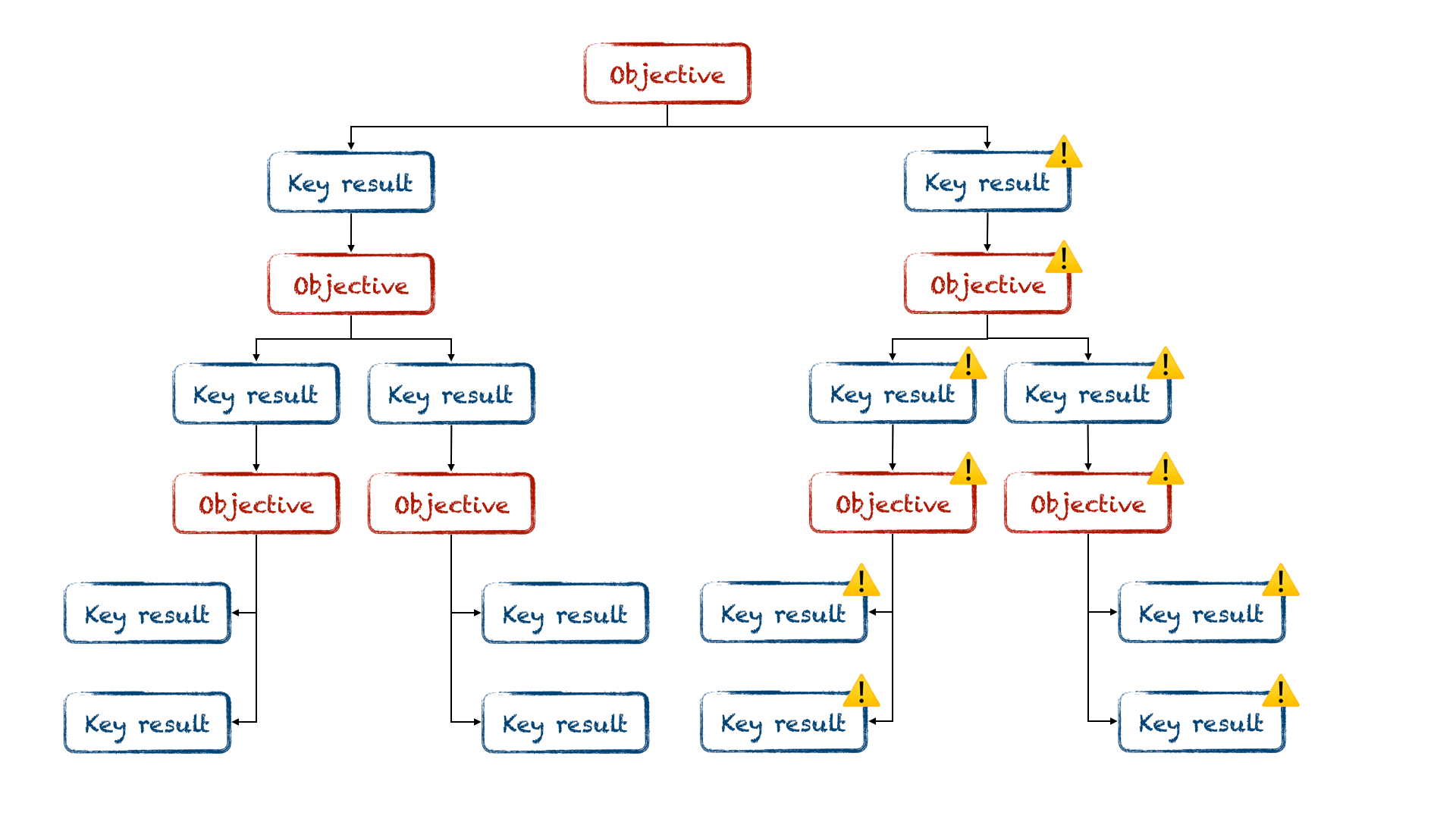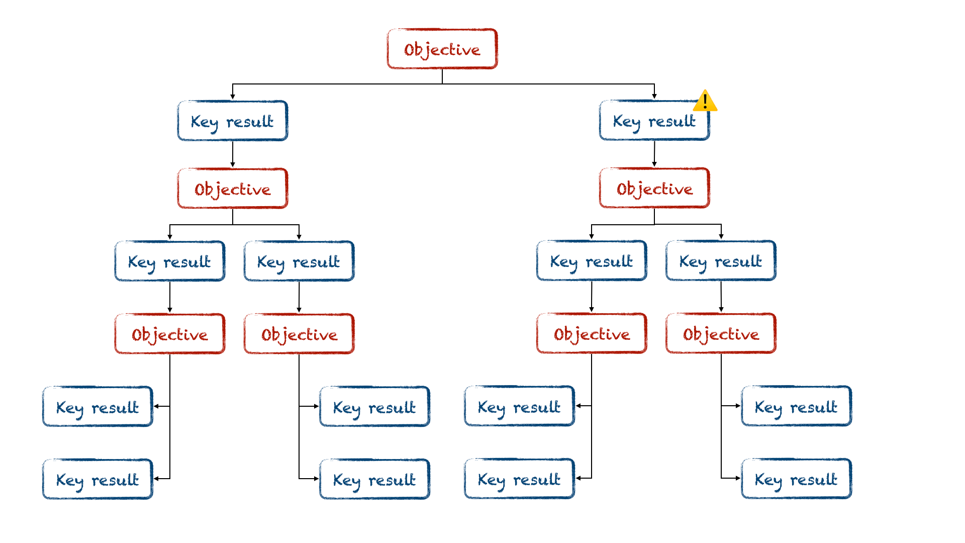 Cascading OKRs is often popular with exec teams because it produces a reassuring master plan view. You can see how every department, every person contributes back to the top priorities.