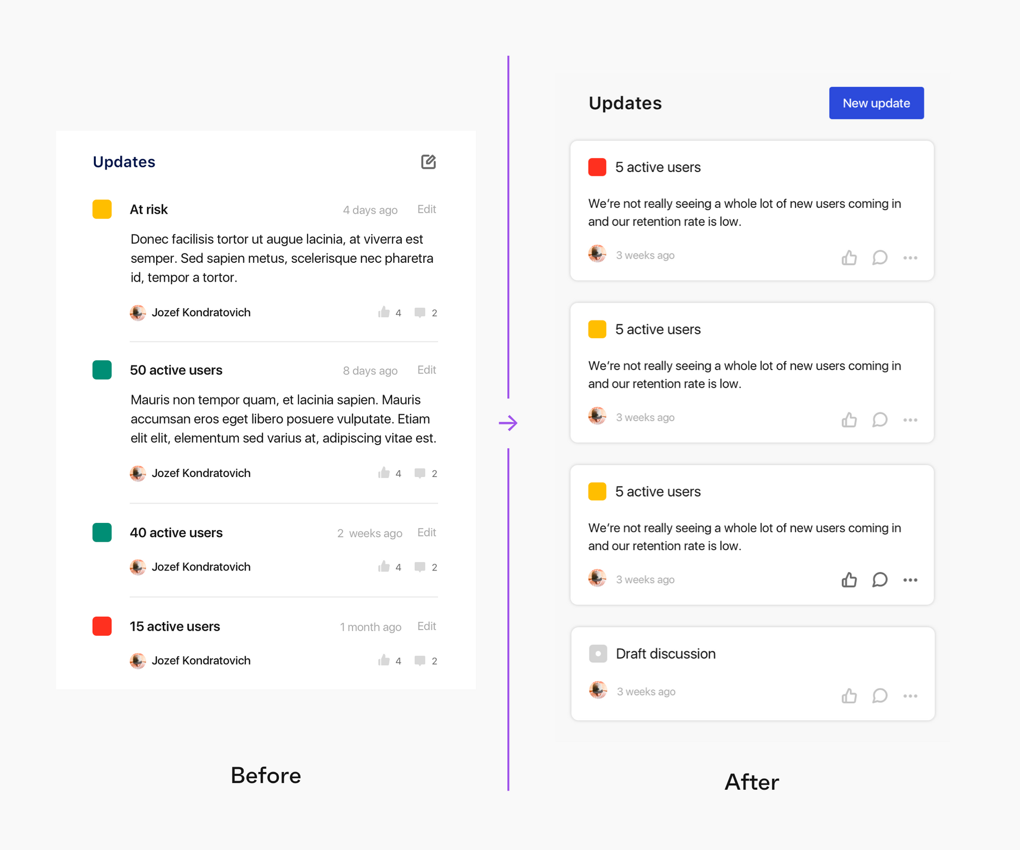 Inside the new update cards is a whole load of new actions too. Like you saw with Draft Discussions, you can do the same thing with all updates now. Now when you post an update you and your team can have conversations, send instant feedback, maintain context, and celebrate wins all in a single update card. Go in the app and check it out for yourself! 🥳