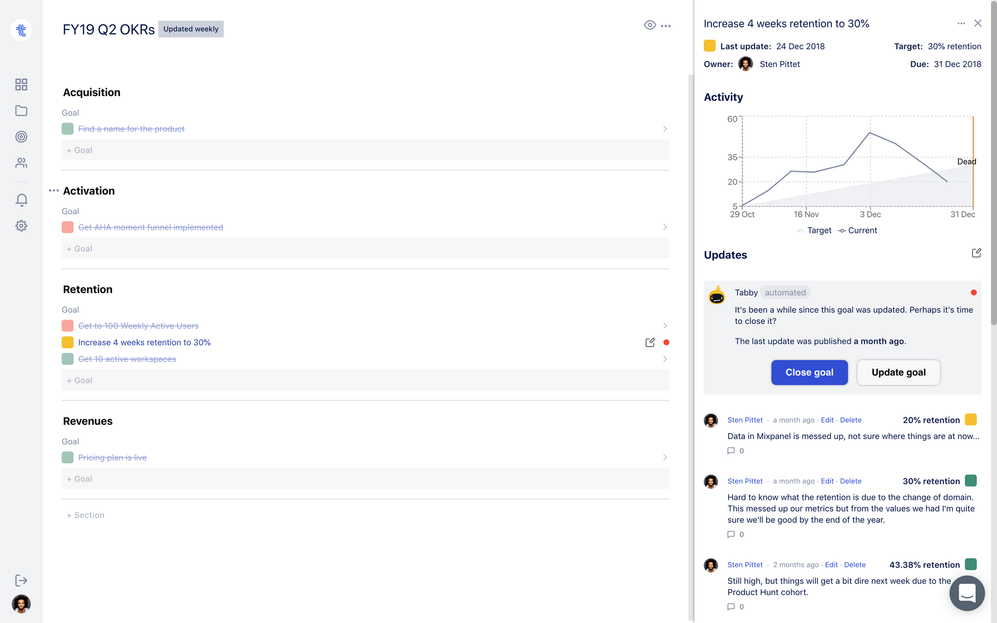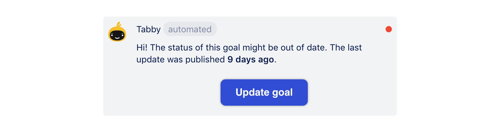 It will also follow up with the goal owners if they've been away, and will flag updates that are out-of-date so that you can correctly assess the situation.