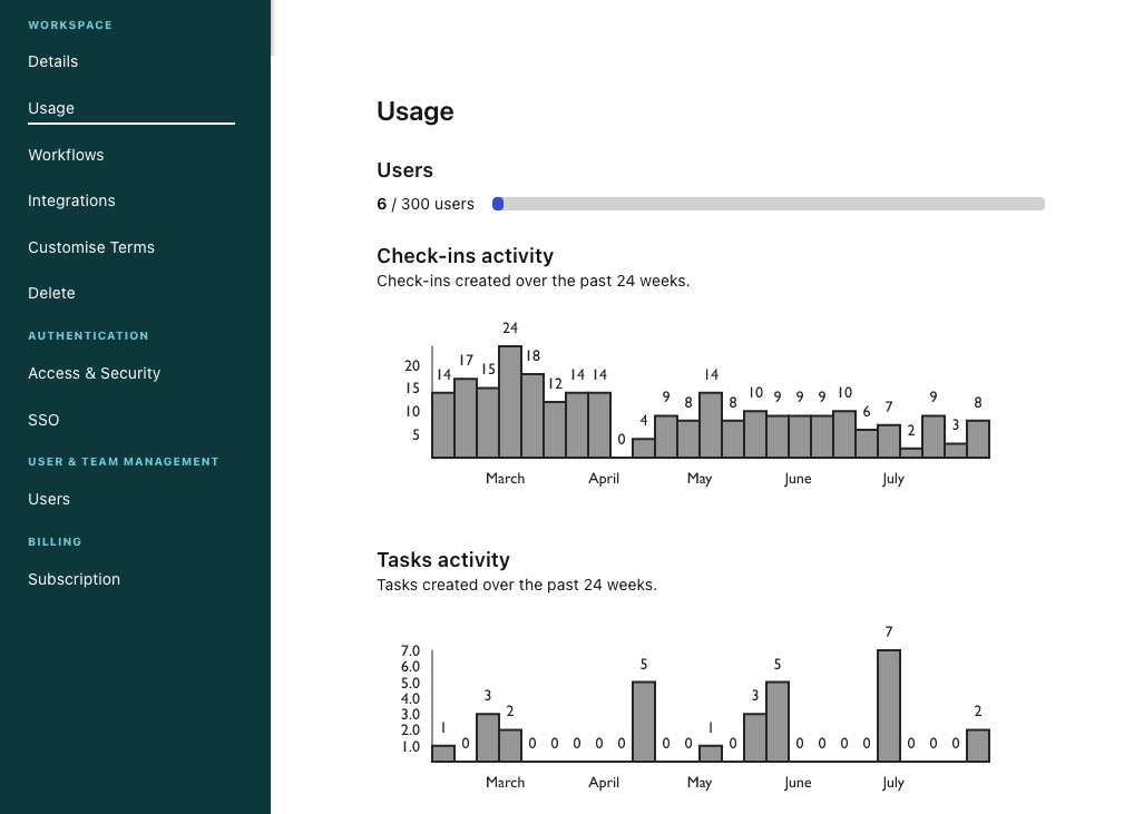 There's a new Usage section in the admin sections of your workspace.There you will be able to see: