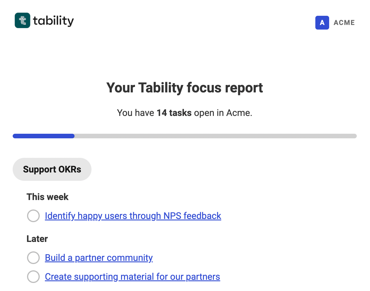 We redesigned our focus report emails to make it easier to track your outstanding items: