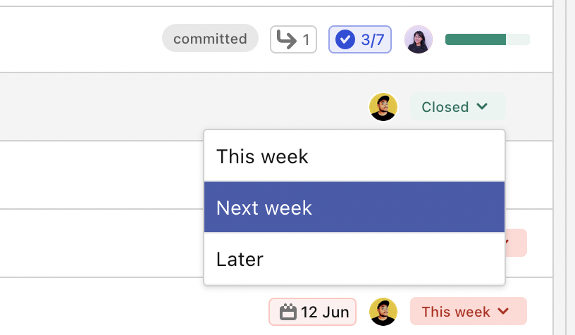 We've just added a new option to let you change the roadmap state of your initiatives inline. You'll be able to move an initiative into this week's planning without having to leave the current view.
