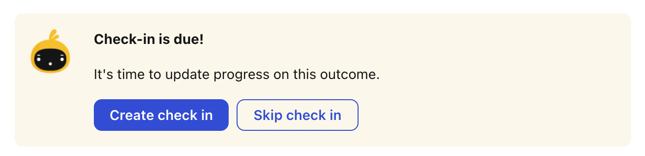 No progress this week? Not ready for an update? You can now skip a check-in until the next cycle in 1-click. This option is available in the outcome panel, right next to the Create check-in action. Read more 👉