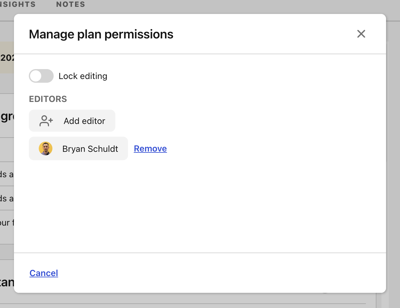 This one was long overdue! You can now lock the editing of your plan to a specific set of users.Locking a plan will prevent non-editors from: