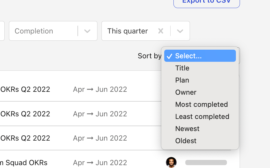 We just added sorting options in the Outcomes and Initiatives listings to help you sort the items using your preferred order.