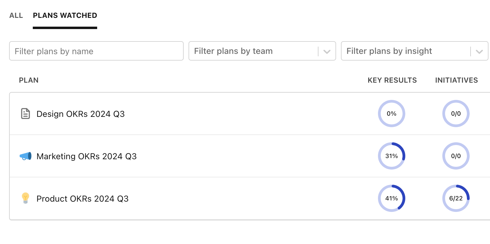 In most companies, people have a handful of team goals that they care about. The selection might be different for each person, but it's unlikely that you need to see everything, everywhere, at once.