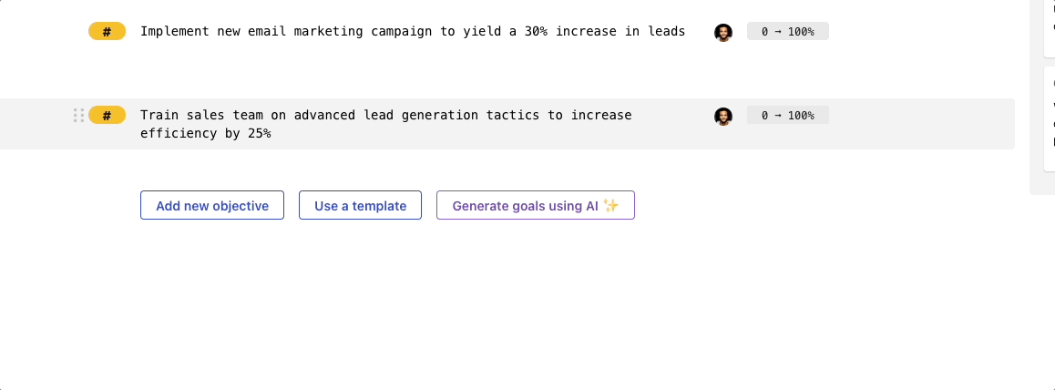 For example, if your goal is "build 12 new integrations with AI", Tability will automatically apply a target value of "12 integrations".
