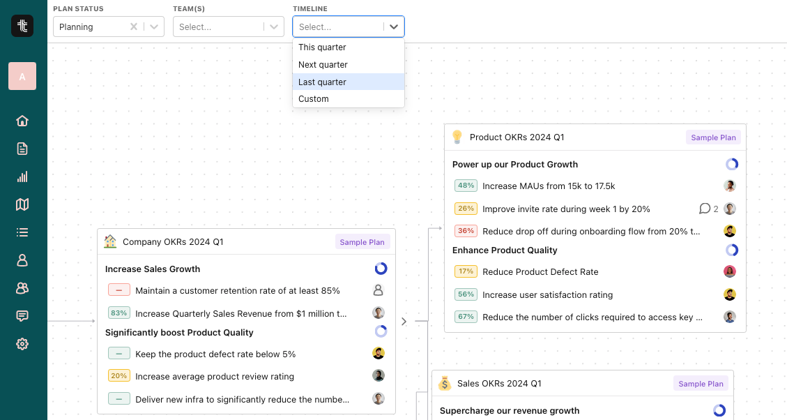 We've added new filters to the Strategy Map. You can customise the view to only show plans belonging to a certain team, or that have a specific status or timeline.