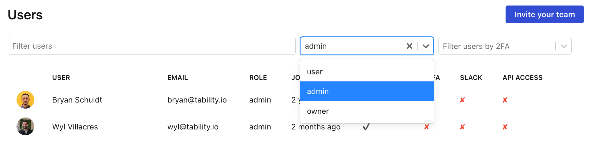 You can now use roles and 2FA status to filter users in the admin section of your workspace.