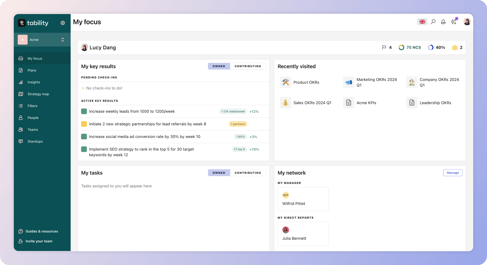 We have just revamped your My Focus view in Tability. The page got a bit too cluttered over time, defeating the purpose of giving you a clear understanding of the things that matter to you.So, now things are organised into 5 sections: