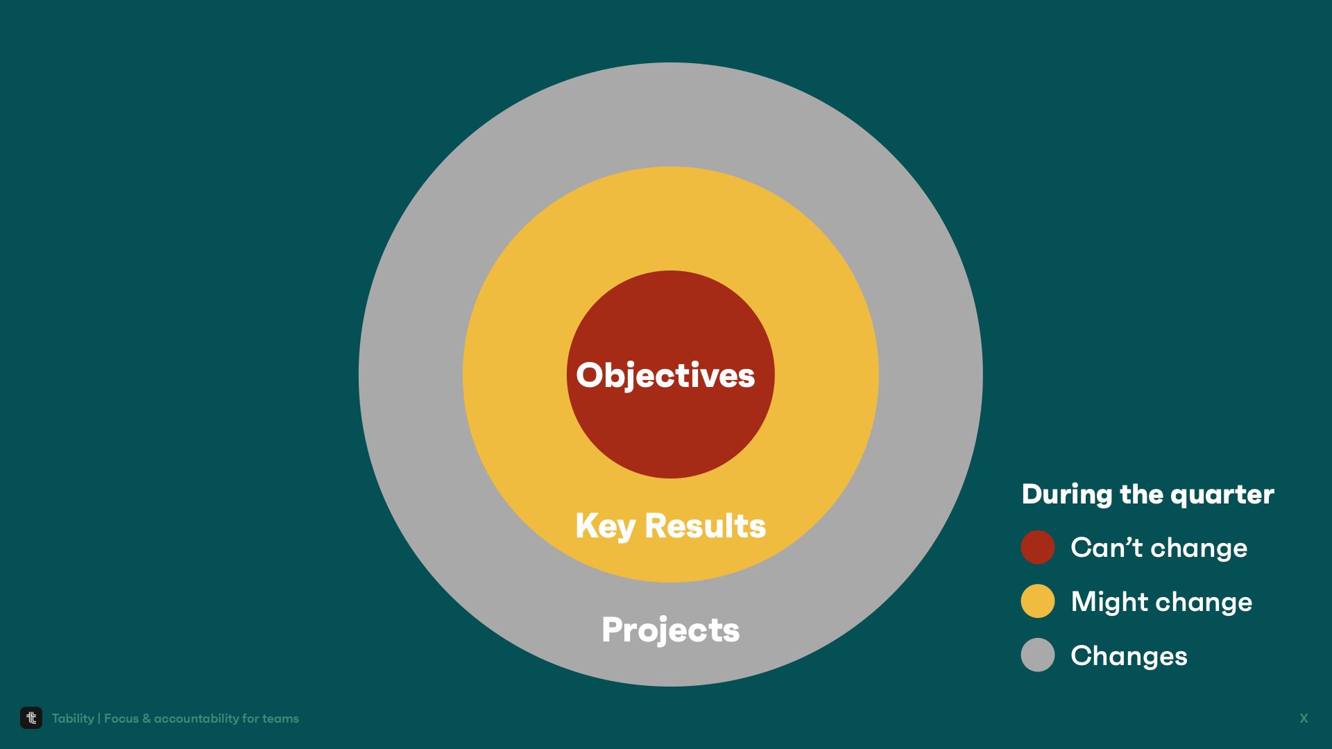 Your Key Results are a bit more flexible, and that's because it's quite hard to pick metrics and set the right targets. There will be times when you'll realize that some KRs are pushing you in the wrong direction, and it'll be ok to change them.