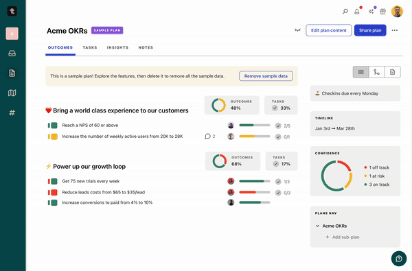 Using the Public Share link, anyone who has that link can access this report view of your plan. Now it doesn't allow anyone to make changes or submit check-ins without logging in, but you do get a full overview of the progress across the entire plan.
