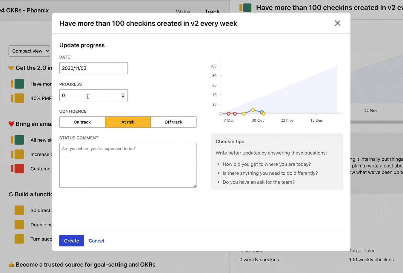 Another improvement is around the check-ins popup. A new chart will help you preview where you are and make it easier to understand if you're on-track.