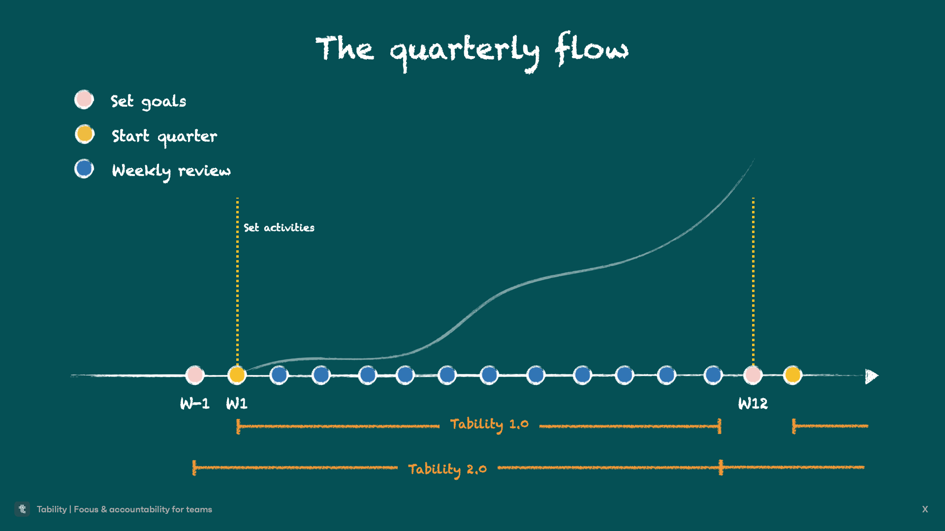 We also change the terminology used in Tability 2.0 to make it easier to adopt OKRs (while keeping it flexible if you want to use a different goal-setting framework).