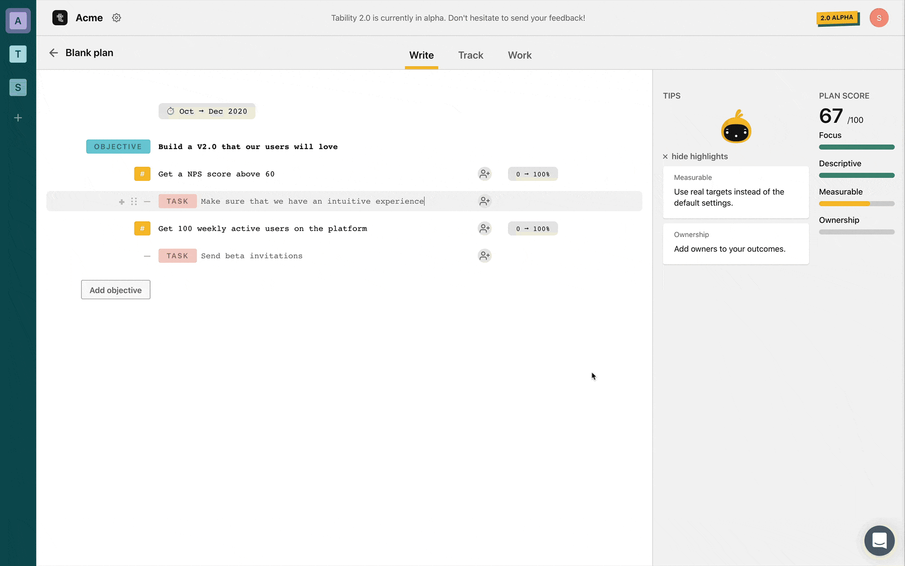 When we launched Tability, we focused on helping teams stay on top of their goals. But there's an important step missing here: you first need to draft the right plan.