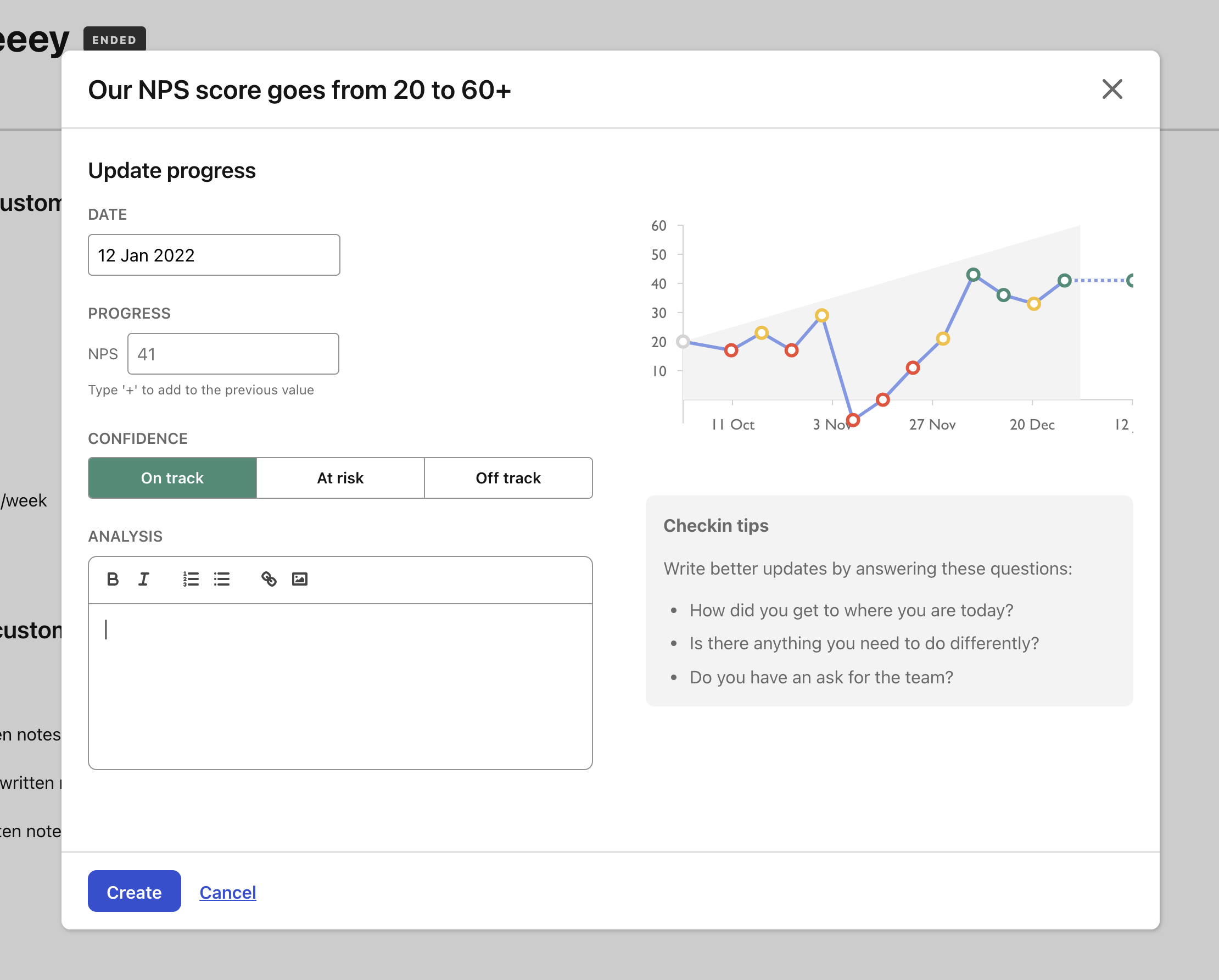 Editor for OKRs + task