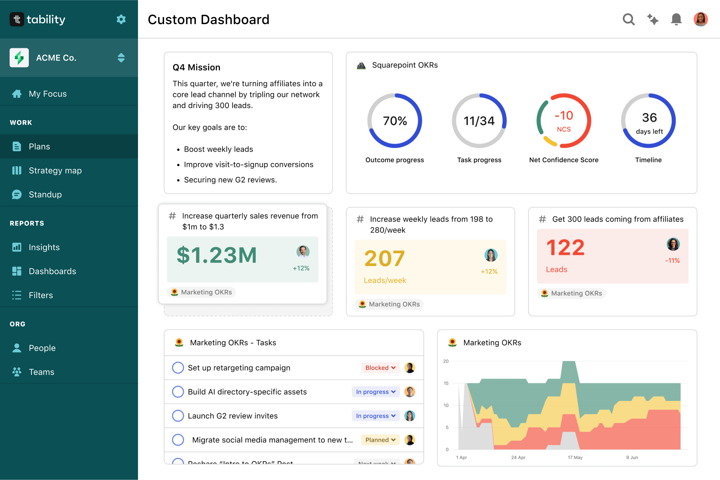 A new custom dashboard feature allows you to build command centres for relevant OKRs and tasks.