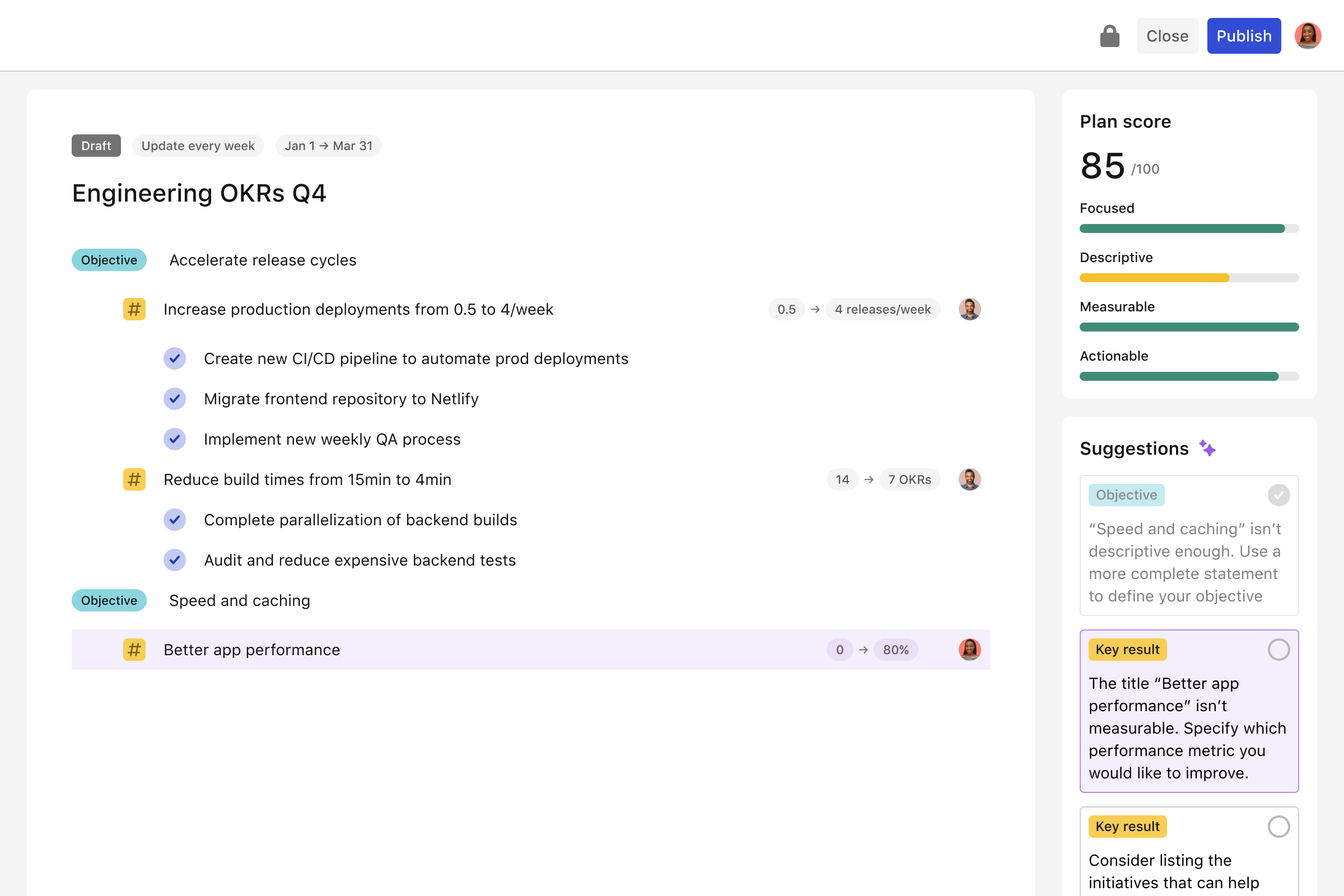 OKRs are full of rich activity on what you and your team are working on. While doing OKRs helps you maintain alignment and visibility on those things, it's really on you to know what to look for 👀