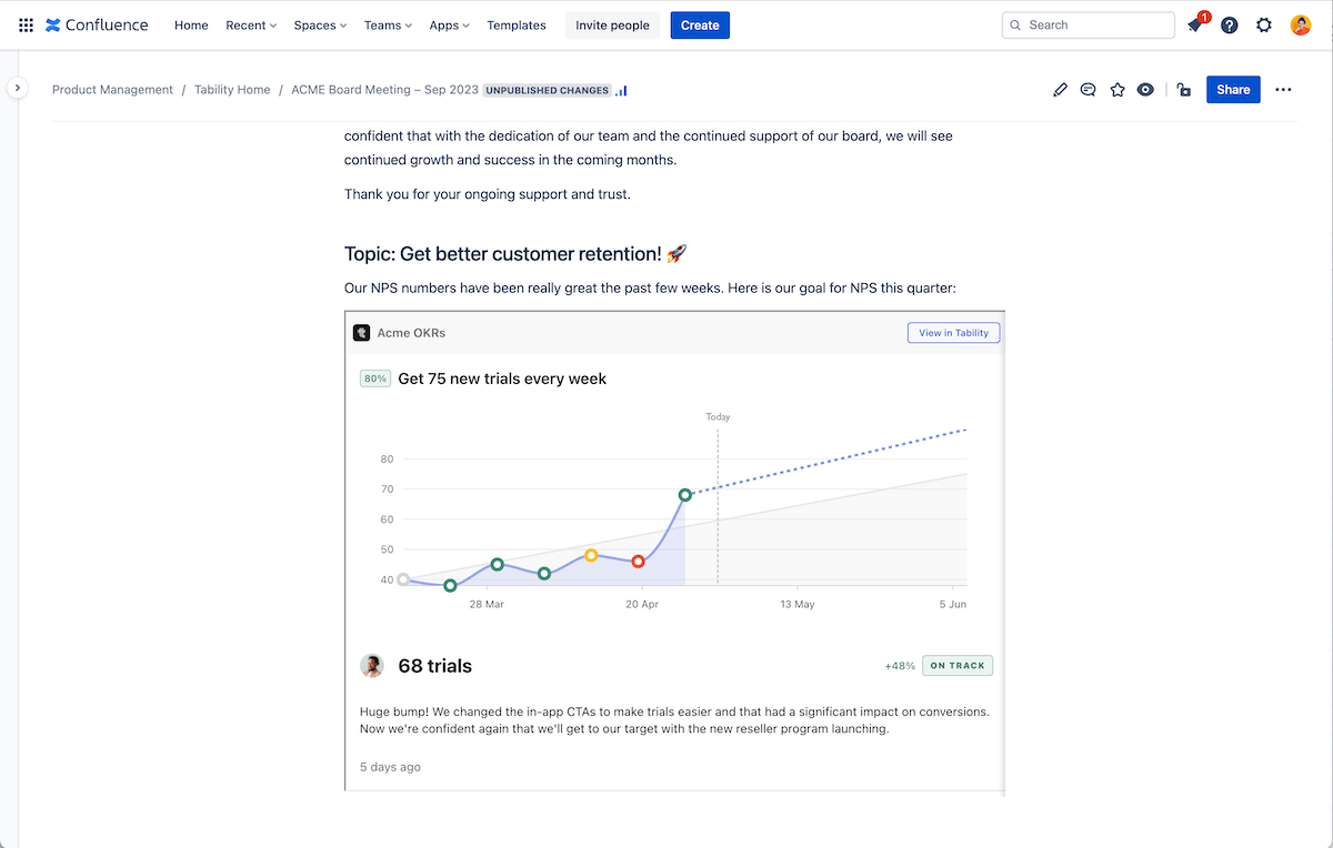 Embed Tability into your docs with our new integrations with Notion and Confluence. See how Tability is becoming more connected, seamlessly integrating into your OKR toolstack and becoming a strategic hub for your business.
