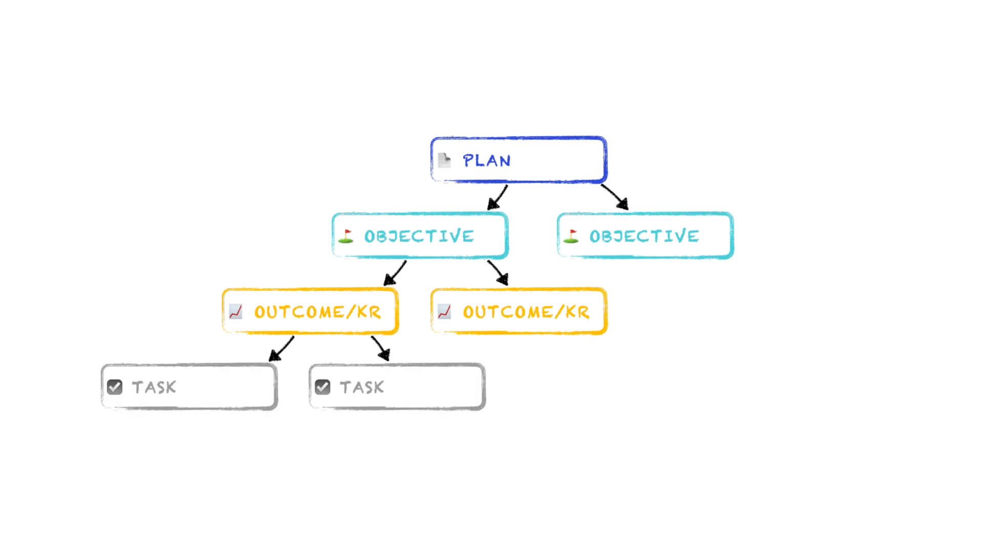 Then on the next level, each outcome can have tasks or initiatives that are linked to it.